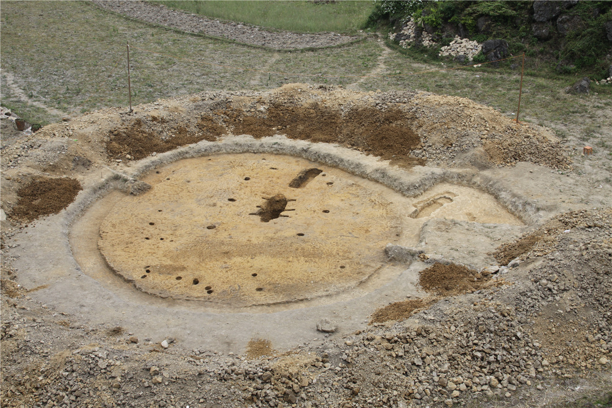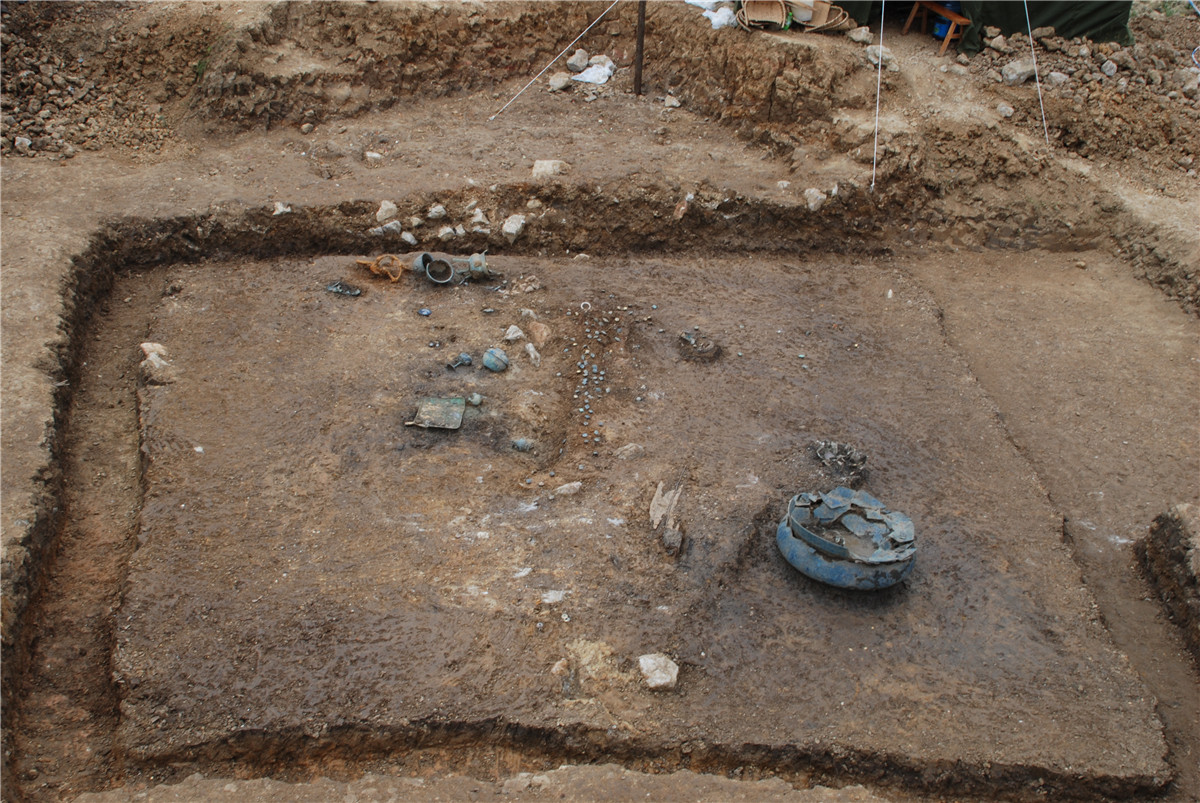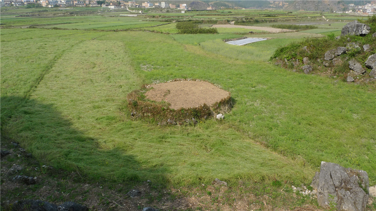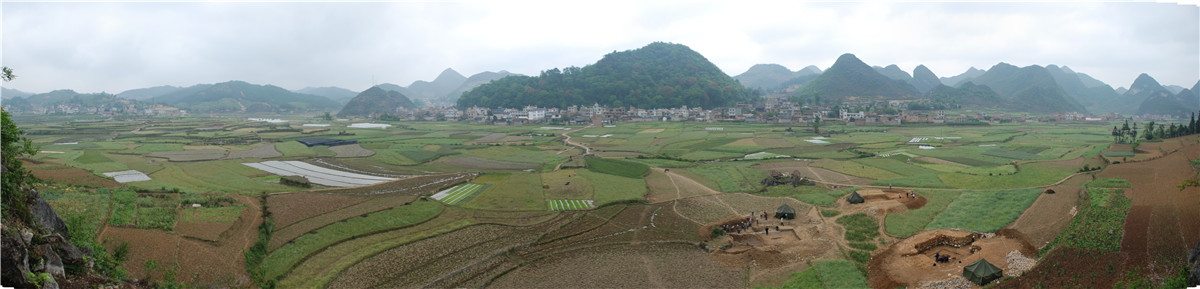 牡宜墓地位于文山州广南县牡宜坝子,2007年9月,由于山体滑坡,在该地暴露一座汉代木椁墓,我所会同文山州文物管理所、广南县民族博物馆等相关部门人员立即对其进行了抢救性清理,出土了青铜器、陶器、漆木器、木雕车马器、五铢钱币等随葬品。2008年8月10日至9月8日,为进一步确定墓地的分布范围和墓葬规模,为探索句町王的活动范围及句町国政治中心所在地寻找更多有力证据,我所再次对广南县黑支果乡的牡宜村进行了详细勘探,共发现突起于地表的土堆二十多座。2011年3至5月,对广南牡宜句町贵族墓地进行了正式发掘,共清理封土堆墓5座、小型墓葬2座。