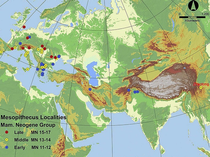 中猴是最早被学术界记录的灵长类动物化石之一,160多年前就发现于希腊雅典附近的佩克米(Pikermi)地区。后来在伊朗、阿富汗、俄罗斯、巴基斯坦都有发现,是地理分布最广泛的非人灵长类化石代表之一。