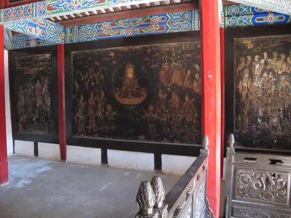 大觉宫建筑群由于年久失修和缺乏日常养护,存在不同程度的破损和缺失:壁画部分,西壁1号壁画整体略显突拱,画面底板部分与墙体严重脱离,西壁2号和东壁5号壁画中心区域部分已破损,且有明显划痕,损毁部分较大,西壁3号壁画右侧区域部分褪色,损毁部分较大;建筑屋面瓦件缺失、部分酥碱、松动,防水性能减弱,屋面漏雨严重;部分门窗虽已重修,但因时间较长,诸多建筑饰物风化极其严重;檐柱糟朽,脊饰缺失,局部坍塌;建筑檩条、椽子、封檐板、博风板、墙内柱糟朽严重,部分柱子柱脚糟朽;墙体由土坯砌筑,局部开裂,墙体变形;室内地面由于后期维修的原因,皆非原状做法,与建筑风格不相一致,且开裂、酥碱现象普遍存在;建筑油饰褪色,部分龟裂,导致地仗层脱落,且所用油饰材料质量低劣,导致其耐候性能极差。正殿建筑中保存有大量珍贵的原状壁画及彩画,而正殿外檐廊间彩画皆为后期制作,所用材料质量低劣,导致彩画大部分褪色、脱落;建筑无散水排水,致使建筑柱脚糟朽,建筑墙面受潮严重,直接危害到建筑特别是古代壁画的安全。