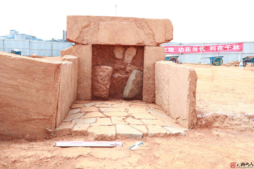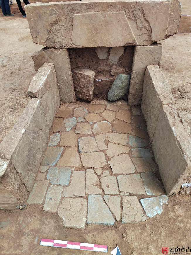 尖堆子梁堆墓位于云南省曲靖市麒麟区越州镇南部,地处南盘江支流流经的丘陵缓坡地带,地势东高西低、南高北低,地表原为农田山地。为配合云南曲靖钢铁集团扬钢钢铁有限责任公司焦化转型升级项目建设,2023年3月至5月,我所主持对项目用地范围内的尖堆子梁堆墓进行抢救性考古发掘。清理带封土的砖石混筑墓1座,发掘面积511.38平方米,出土遗物54件(组),采集标本27件(袋)。